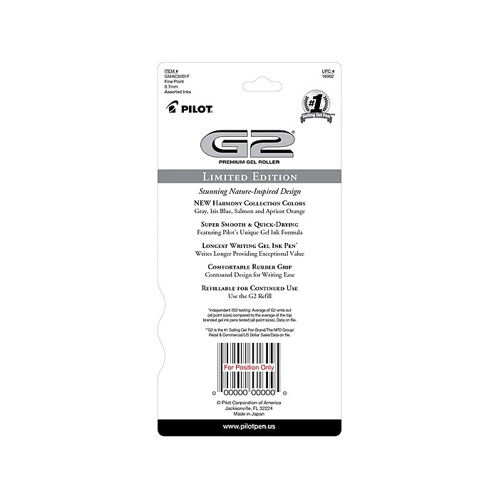 - Smooth, long-lasting premium gel ink in assorted colors: black, iris blue, gray, salmon, and apricot