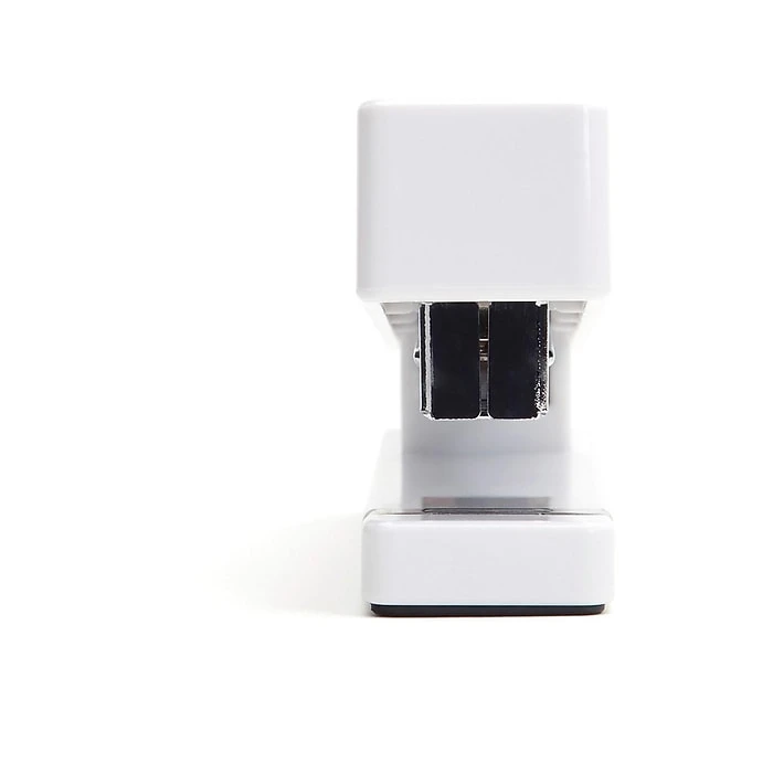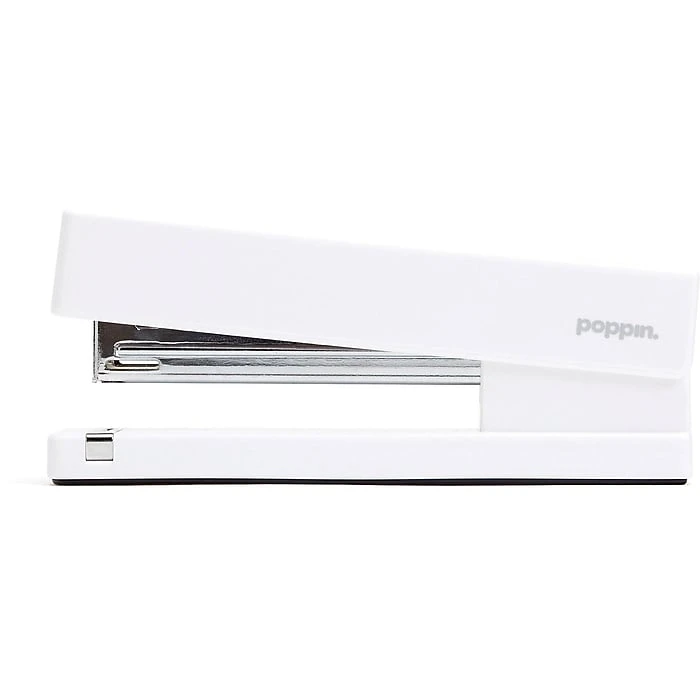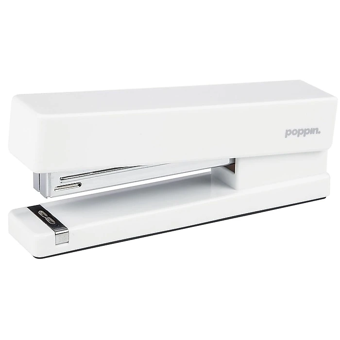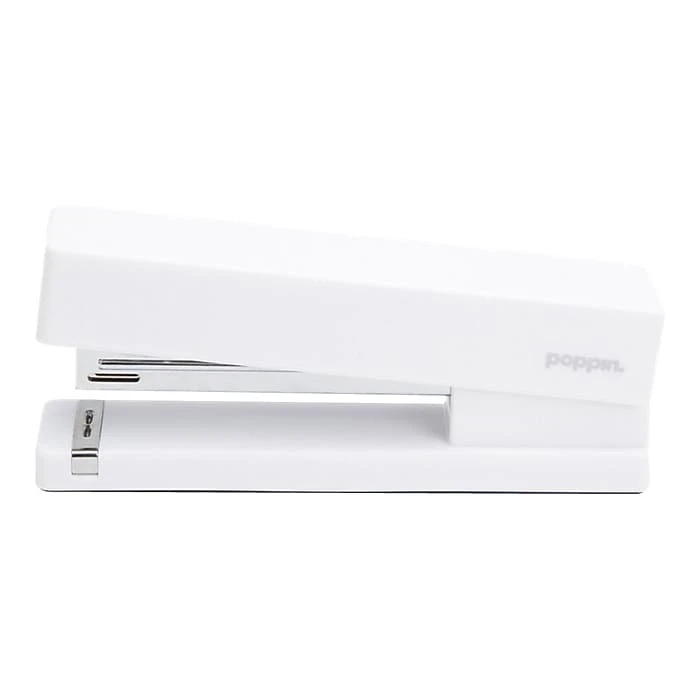 Create tidy stacks of bound paperwork with this white stapler. Featuring a modern lacquered body, this tool has a sleek, sophisticated appearance, and the white color adds a bright pop to any workstation. This Poppin stapler can bind up to 20 sheets at a time for added convenience and is made to accommodate half-strip and full-size staples, offering extra versatility.