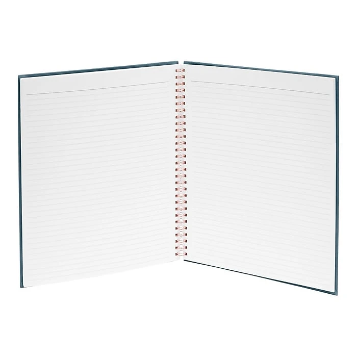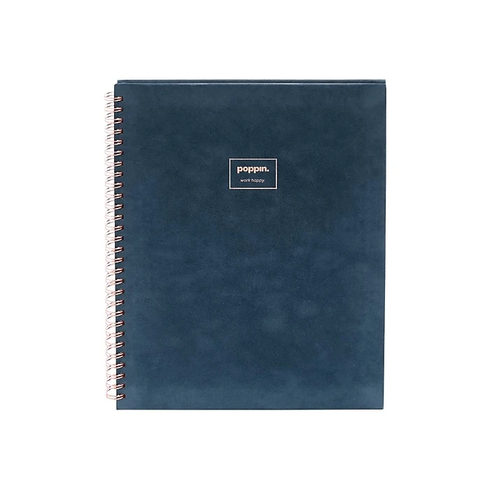 Write down important class details, reminders, and other information in this large notebook. The copper spiral binding adds a stylish flair and allows for easy page turning, while the perforated edges make it simple to remove used sheets. This Poppin Velvet spiral notebook is large, offering plenty of room for writing and has a hard cover, providing increased durability and protection to contents.