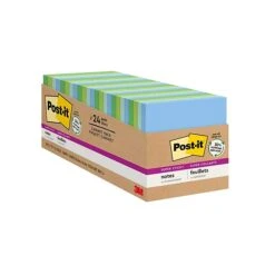 Post-it® Recycled Super Sticky Notes in 3 in x 3 in feature 2x the sticking power. Use for notes or reminders on doors, windows or walls. Unique adhesive reliably sticks and re-sticks so your message can stay front and center. Move your notes with you throughout the day. Cabinet pack size is a great way to stock up your work area, study space, or classroom. Made with 30% recycled paper. Post-it® Super Sticky Notes are recyclable and the paper in Post-it® Super Sticky Notes is sourced from certified, renewable and responsibly managed forests. Keep calm and collected with the tranquil blues and greens of the Oasis collection. 24 Pads/Pack, 70 Sheets/Pad.