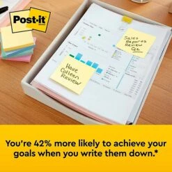 - Post-it® Super Sticky Notes stick and re-stick so your thoughts get noticed.