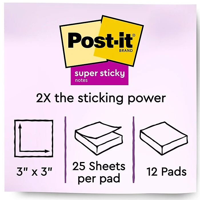 - Post-it® Super Sticky Notes have 2X the sticking power.