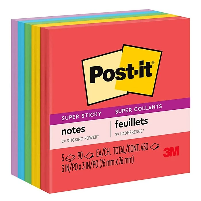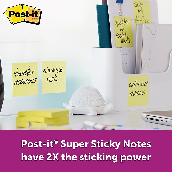 - Post-it® Super Sticky Notes stick and re-stick so your thoughts get noticed.