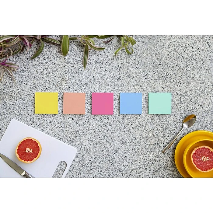 Post-it® Super Sticky Notes in 3 in x 3 in feature 2x the sticking power. Use for notes or reminders on doors, windows or walls. Unique adhesive reliably sticks and re-sticks so your message can stay front and center. Move your notes with you throughout the day. Share the warmth of the summer sunshine memories all year long with the Summer Joy collection. Colors in the Summer Joy collection include Citron, Papaya Fizz, Power Pink, Washed Denim and Fresh Mint. Post-it® Super Sticky Notes are recyclable and the paper in Post-it® Super Sticky Notes is sourced from certified, renewable and responsibly managed forests. 12 Pads/Pack, 90 Sheets/Pad.
