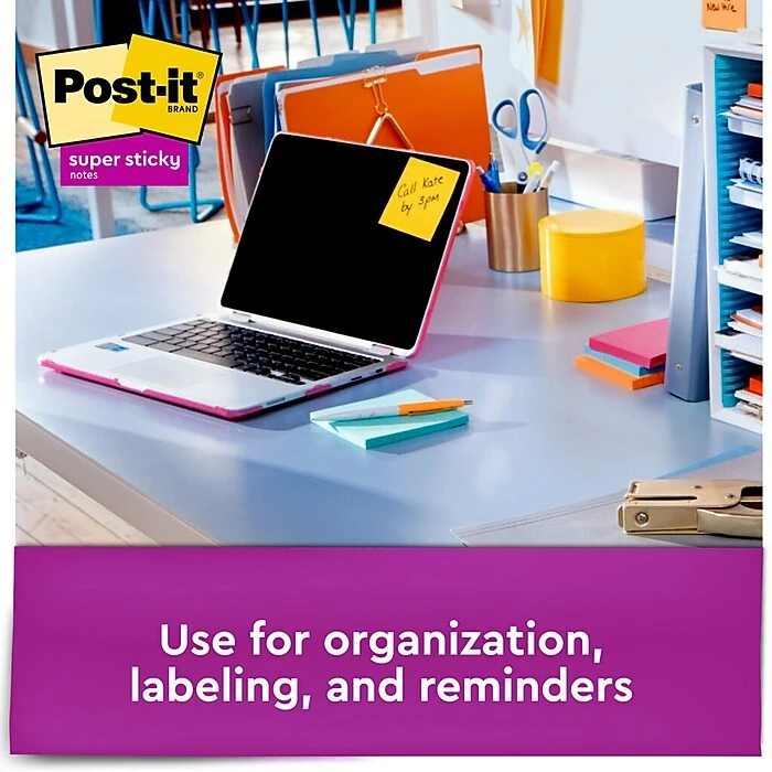- Post-it® Super Sticky Notes stick and re-stick so your to-do lists get noticed.