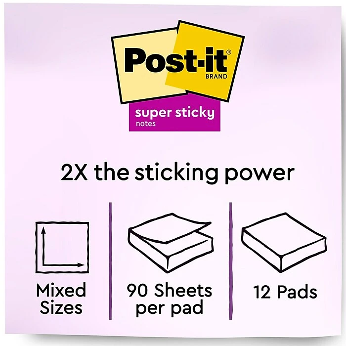 - Post-it® Super Sticky Notes have 2X the sticking power.