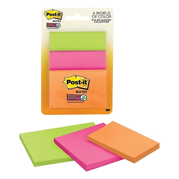 - Assorted Sizes, Rio De Janeiro Collection, Super Sticky Notes