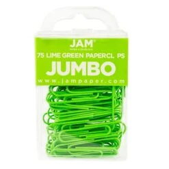 JAM Paper® Colored Jumbo Paper Clips, Large 2 Inch, Lime Green Paperclips, 2 Packs Of 75 (21830627a)