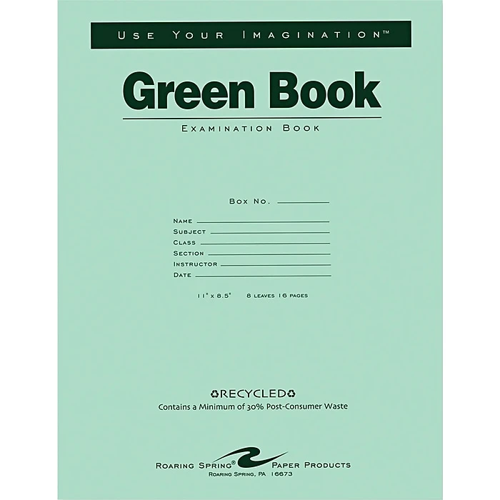 - Recycled green exam book