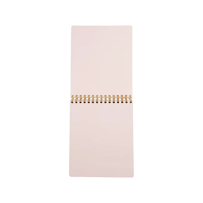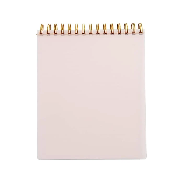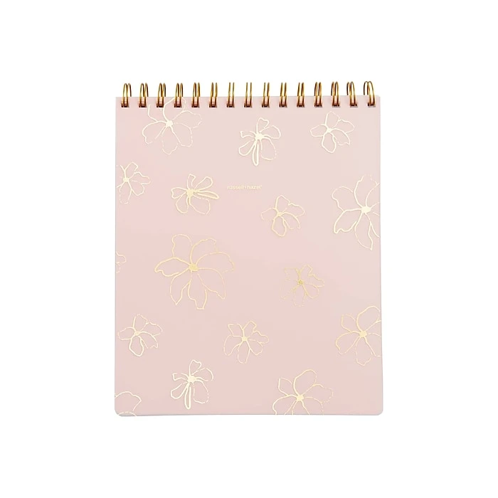 This Russell+Hazel Posy spiral memo notebook is the perfect size for those on-the-fly meetings or jotting down last-minute ideas that are sure to be groundbreaking. The gold-tone foil cover with a floral pattern in pink is sure to enhance any note-taking system. This notebook features top spiral-bound design, frosted front and back covers, and college-ruled pages. Each page also includes a section for the date.