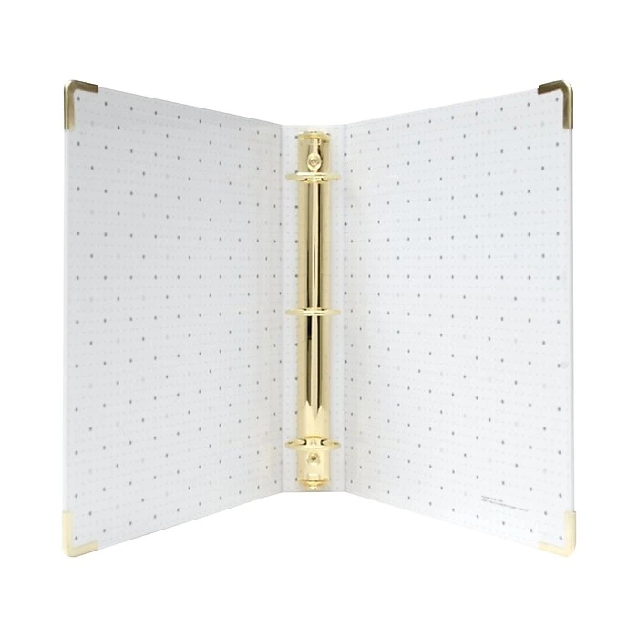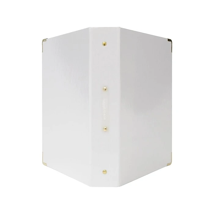 This Russell+Hazel premium signature three-ring binder features gold-tone hardware, a dry-erase interior, metal-reinforced corners, and a smooth laminated patent cover. Create a custom planning and organizing system that works the way you want it to and adds life to your work.
