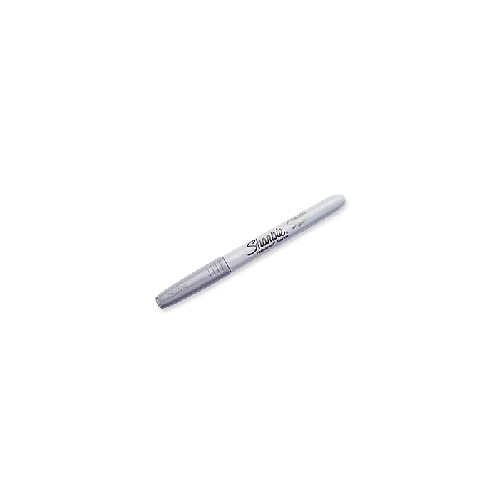 Write on almost any hard surface with these Sharpie Metallic silver permanent markers. Each one has a fine point, letting you make permanent marks with the sharpest precision. The quick-drying ink resists water, smearing and fading and works on glass, metal or almost any other hard surface. These Sharpie Metallic silver permanent markers are ideal for countless uses in the home, classroom or workplace.