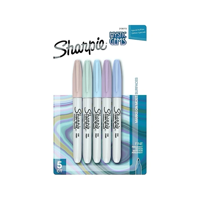 Made to mark practically anywhere, Sharpie permanent markers inspire you to transform ordinary surfaces into passionately creative statements. With special-edition mystic gem colors, these Sharpie markers combine soft pastels with darker, natural colors to produce vibrant marks inspired by the dynamic energy of gemstones. The original permanent marker, Sharpie features iconic ink that dries quickly and resists both water and fading. Finally, depend on these fine-point markers to leave bold marks that impress.