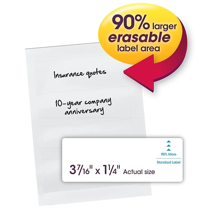 SuperTab erasable file folders have a special erasable surface that makes it easy to revise or reuse labels and file folders. The labels are oversized to fit SuperTab file folders. The erasable label is 90% larger than standard size file folder labels, so you can use larger text or add more lines of description which makes it easier to read and find file folders Quickly. Write directly on the erasable surface with a permanent marker and easily erase with a standard white eraser. An eco-friendly, reusable solution for your filing needs. Not recommended for use in printers.