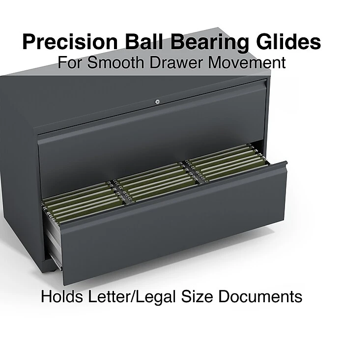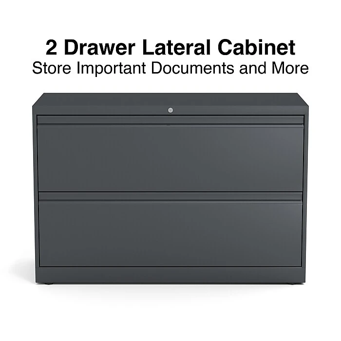 Expand your office’s document storage capabilities with this lateral file cabinet. Two spacious drawers accept both legal and letter paper, while the top surface doubles as a printer stand or binder storage area. An interlock system prevents both drawers from extending simultaneously to avoid tipping. With a keyed lock system, this lateral file cabinet keeps private information securely stored away.