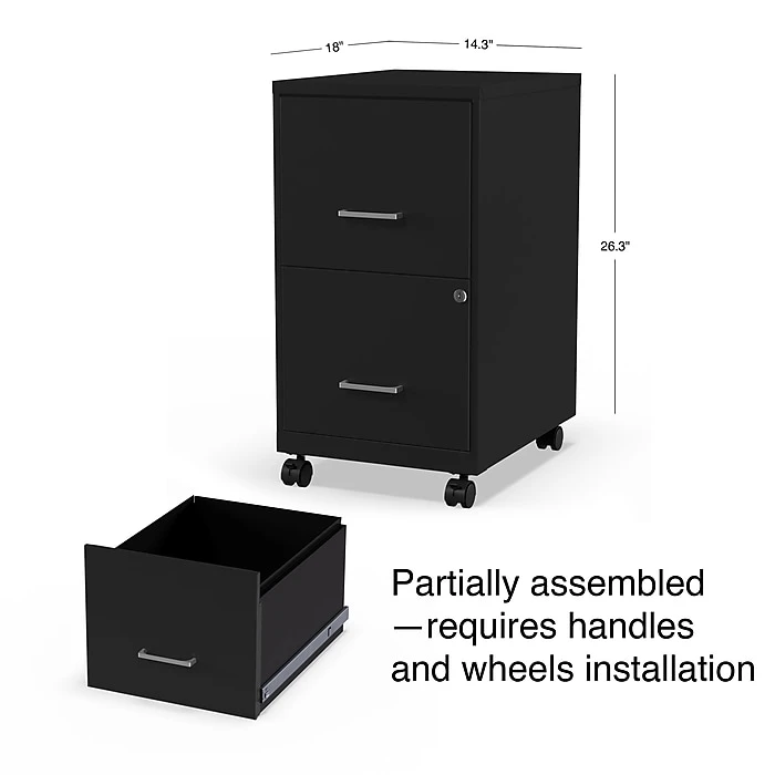Organize file folders in this mobile light duty file cabinet, which features a sleek black finish and silver-tone hardware. A single keyed lock secures the two drawers, restricting access whenever you step away from your desk. Each letter-size drawer accommodates hanging folders, keeping files neatly aligned and easily searchable. This cabinet boasts rolling casters, so you can roll your files throughout the office. With its compact size, this vertical file cabinet is ideal for use in small spaces.