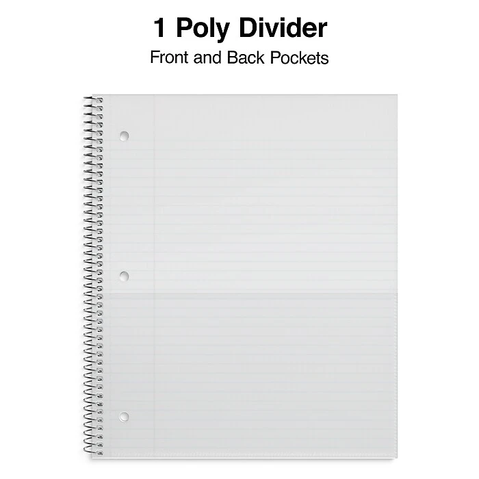 Be ready to take notes and hand-in neat, tidy assignments with this Staples; Accel durable poly cover college-ruled notebook. Equipped with convenient, tear-off micro-perforated sheets that tear off cleanly, this one-subject notebook is all you need to compose study notes and turn-in quizzes for your classes. The durable poly cover protects your notes from food and beverage spills, keeping your notebook in tip-top shape for the whole semester.