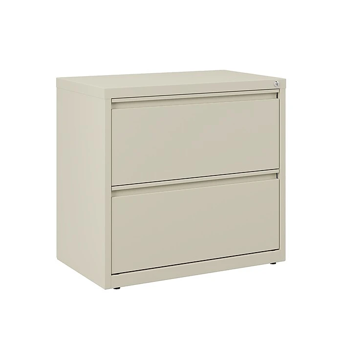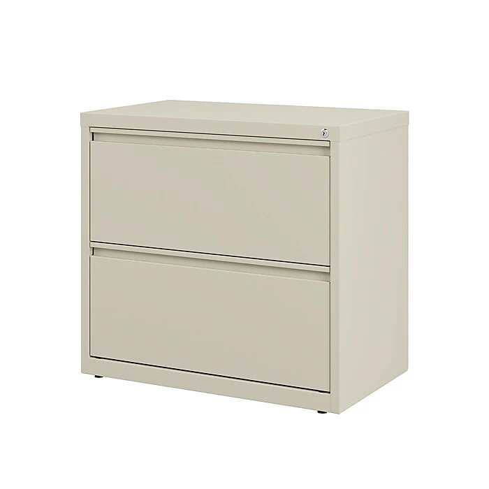 Organize your workplace and keep track of business records with this commercial two-drawer lateral file cabinet. Boasting a space-efficient design, this cabinet fits in most workplaces, adding extra storage that doesn’t get in the way. The two 30-inch-wide drawers accommodate considerable numbers of letter and legal-size files and offer easy access to records with wide drawer pulls and ball-bearing slide suspensions. This putty commercial lateral file cabinet keeps stored documents secure with a built-in lock.