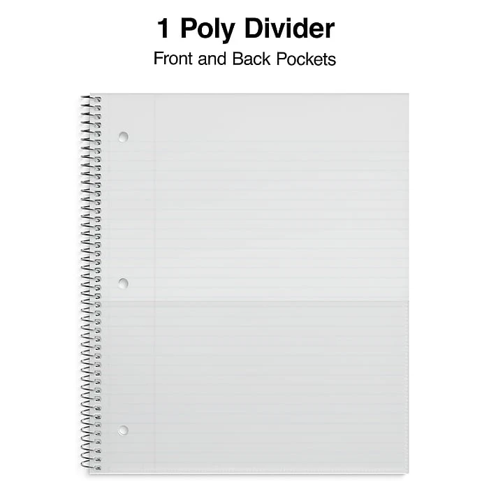 Make note-taking easier with this pink poly notebook. The handy notebook has 100 perforated college-ruled sheets for ample writing space and easy sharing, and a premium poly cover protects the sheets from spills or tears. This Staples Premium 8 x 11-inch pink poly notebook features a pocket divider to provide storage space for loose papers.