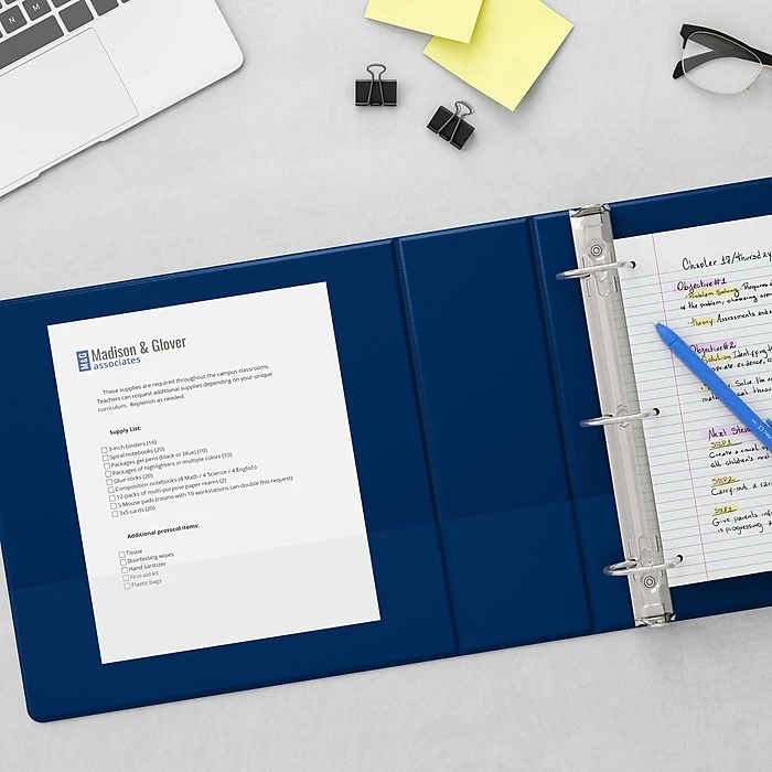 - Navy blue view binder is an excellent choice for storing spreadsheets and other wide papers