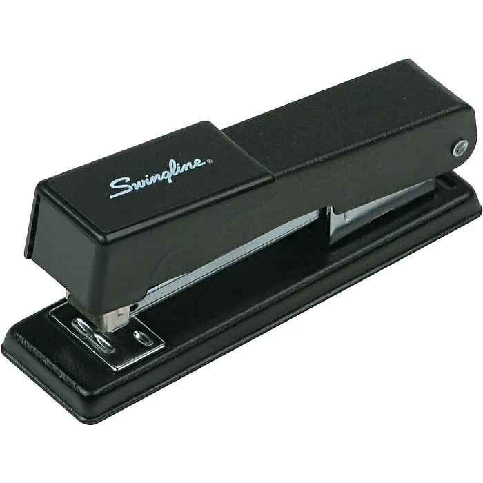 Conveniently sized, the Swingline® Compact Desk Stapler is easy to use. It staples up to 20 sheets at a time and provides both tacking ability and temporary pin staple functions. Rubber feet prevent skidding and metal build ensures long-term durability. The compact size ensures a small footprint and uses a half strip of 105 standard staples. Pre-packed with 1,000 standard staples. Black. Limited 1-year warranty.