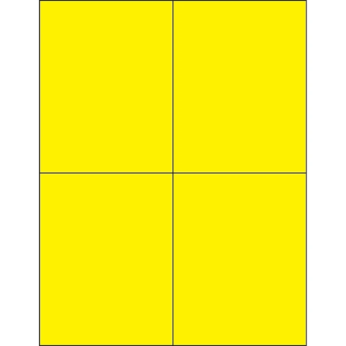 4 1/4″ x 5 1/2″ Fluorescent Yellow Rectangle Laser Labels. Use to create your own product or mailing labels. Labels work with both Laser and ink jet printers. Permanent adhesive. Labels stick to a variety of smooth surfaces including paper, corrugated, plastic, wood, glass and metal.