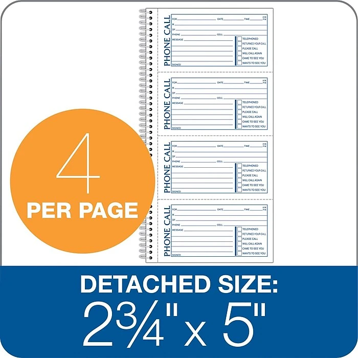 TOPS® Phone Message Book, Ruled, 2-Part, White/Canary, 11″ x 5 1/2″, 1/Ea