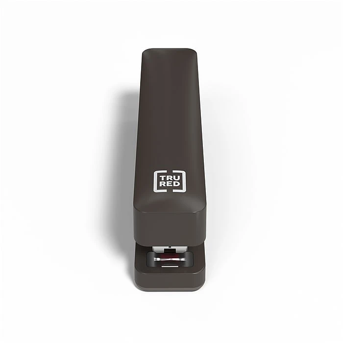 Keep this half-strip stapler in your drawer to handle paperwork. With a rubber grip on the bottom, this stapler offers an easy grip and stable use on your work surface. A convenient low-staple indicator lets you know when it’s time for a refill. This TRU RED half-strip stapler opens flat for tacking and has a top-loading design for effortless reloading.