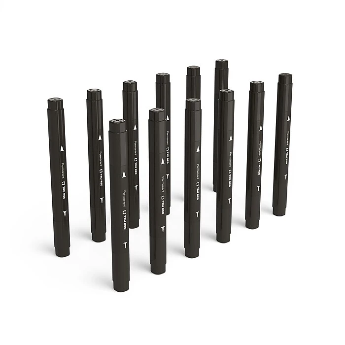 Expand your selection of writing tools and supplies with these dual-tip black permanent markers. The low-odor non-toxic ink lets you write confidently, while the square body offers a firm slip-free grip and prevents rolling. Convenient labels at each end let you easily choose between a fine and ultrafine tip. These fade-resistant TRU RED dual-tip black permanent markers work on a variety of surfaces for versatility.