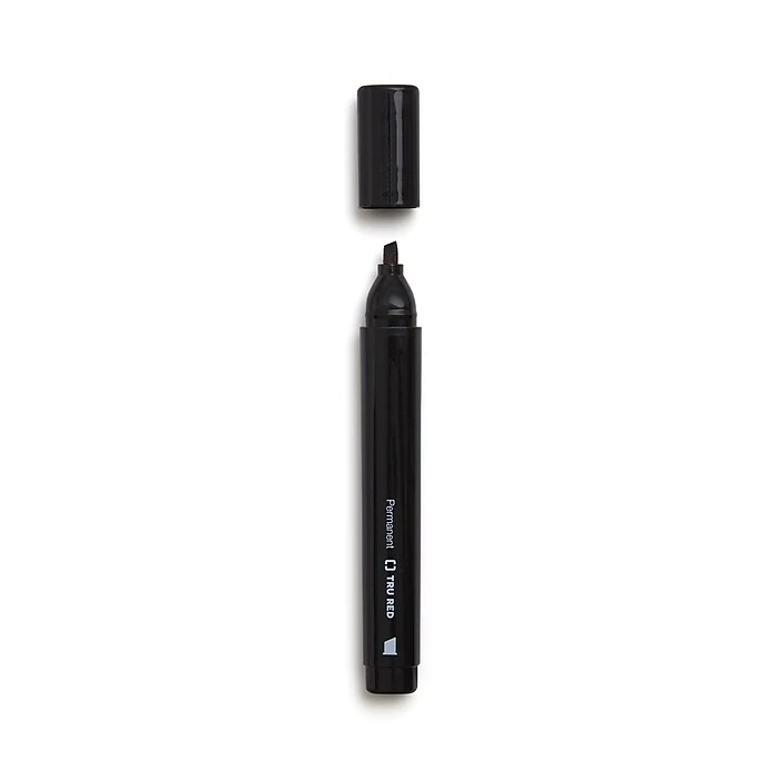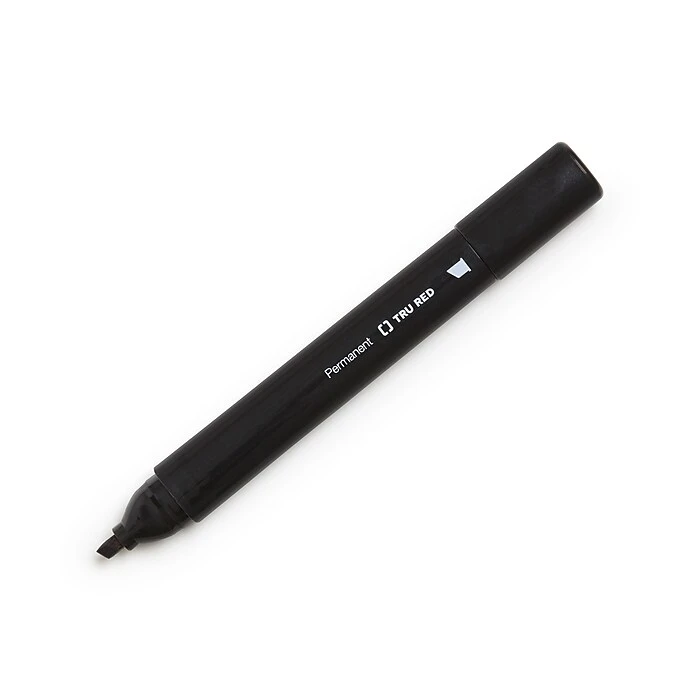 Label boxes, write notices, and work on projects with these black permanent markers. The chisel tips offer versatility, allowing for both bold, thick lines and thin, precise lines, while the black ink makes writing highly visible. These TRU RED™ black permanent markers come with two per pack, so you can have a spare on hand for added convenience.