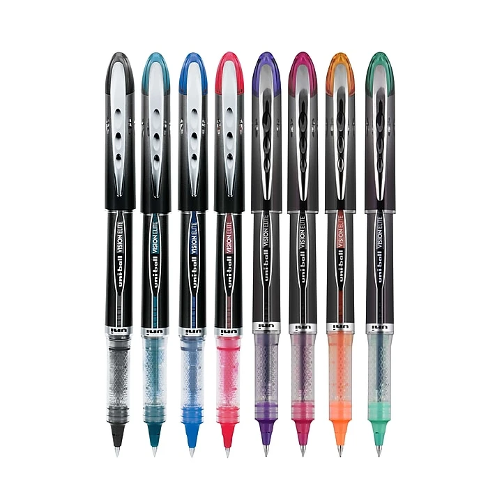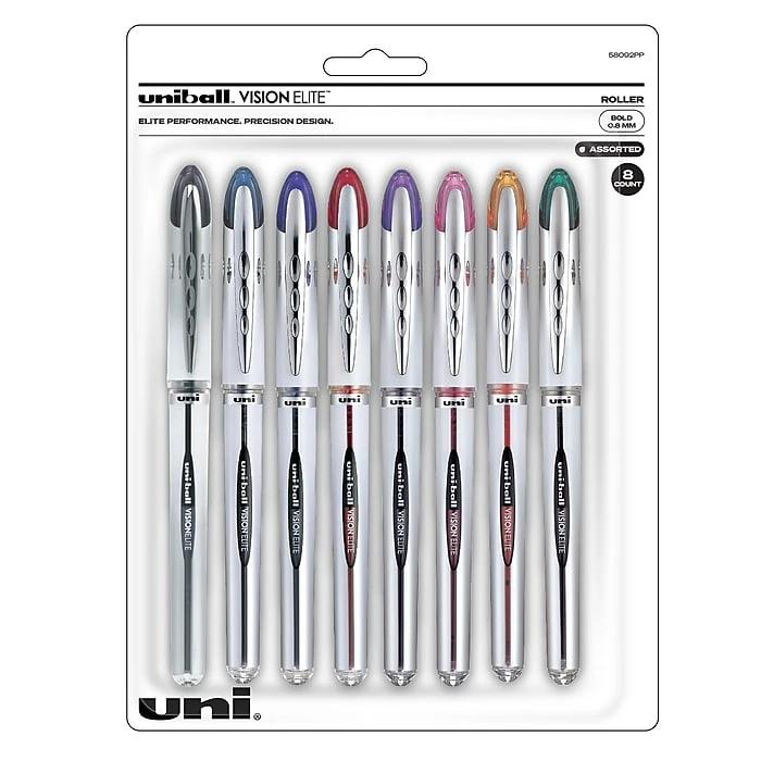 Write with the precision and ease of a fountain pen without the mess by using this micro-point pen. The fade-resistant and water-resistant ink is formulated to stop document alteration, and it’s airplane-safe, so it doesn’t leak due to cabin pressure changes. This package of uni-ball Vision Elite pens has eight assorted colors.