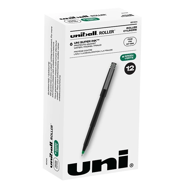 - 0.7 mm fine point roller pens have uni Super Ink that protects against water, fading and fraud