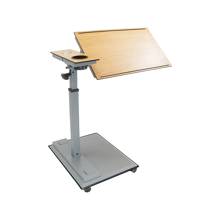 The WiseLift unique space-saving table is your personal area to comfortably work, eat, or read. A fixed-position table section features an oversize drink holder and three USB charging ports. Adjust the multiuse tray to infinite positions of height, tilt, and swivel for your personal comfort. The low-profile base nestles around a sofa, chair, or bed. The included wheels can be attached for easy maneuverability.