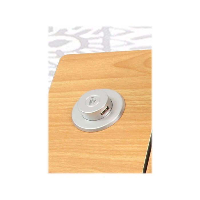 - Adjustable table with three-port USB charging station offers a large work surface for big projects